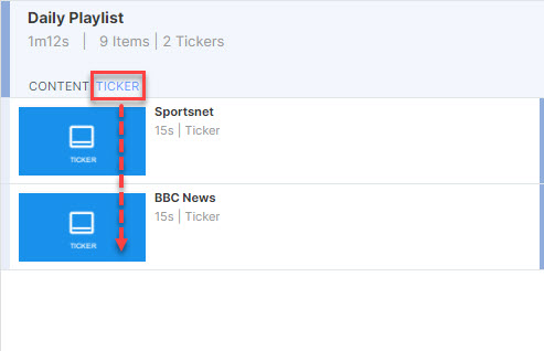 Clicking Ticker will reveal the tickers that have been assigned to the currently selected playlist.