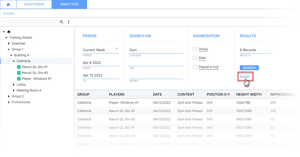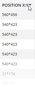 You can reorder your results on any column. Clicking on the POSITON (X:Y) title once will sort the results so all the content playing from the origin point (X:0, Y:0) will be shown first, followed by content that was displayed in other screen locations (such as in a template zone). Clicking the title again will reverse the sorting order.